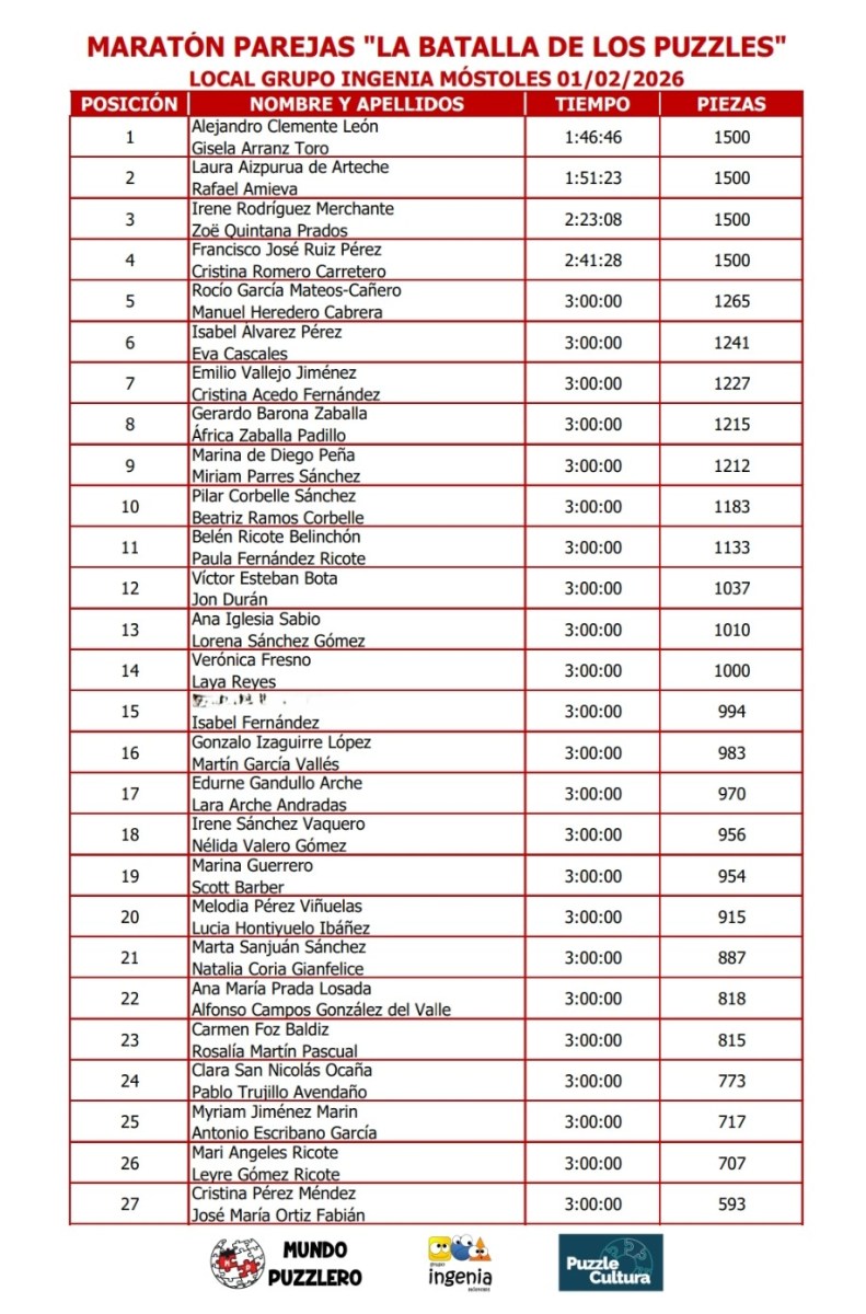 Batalla de los puzzles (Maratón Parejas) (41) Publicado 03/02/2026 en 917 × 1392 en LA BATALLA DE LOS PUZZLES (31 de enero y 1 de febrero de 2026) ← Anterior Siguiente →